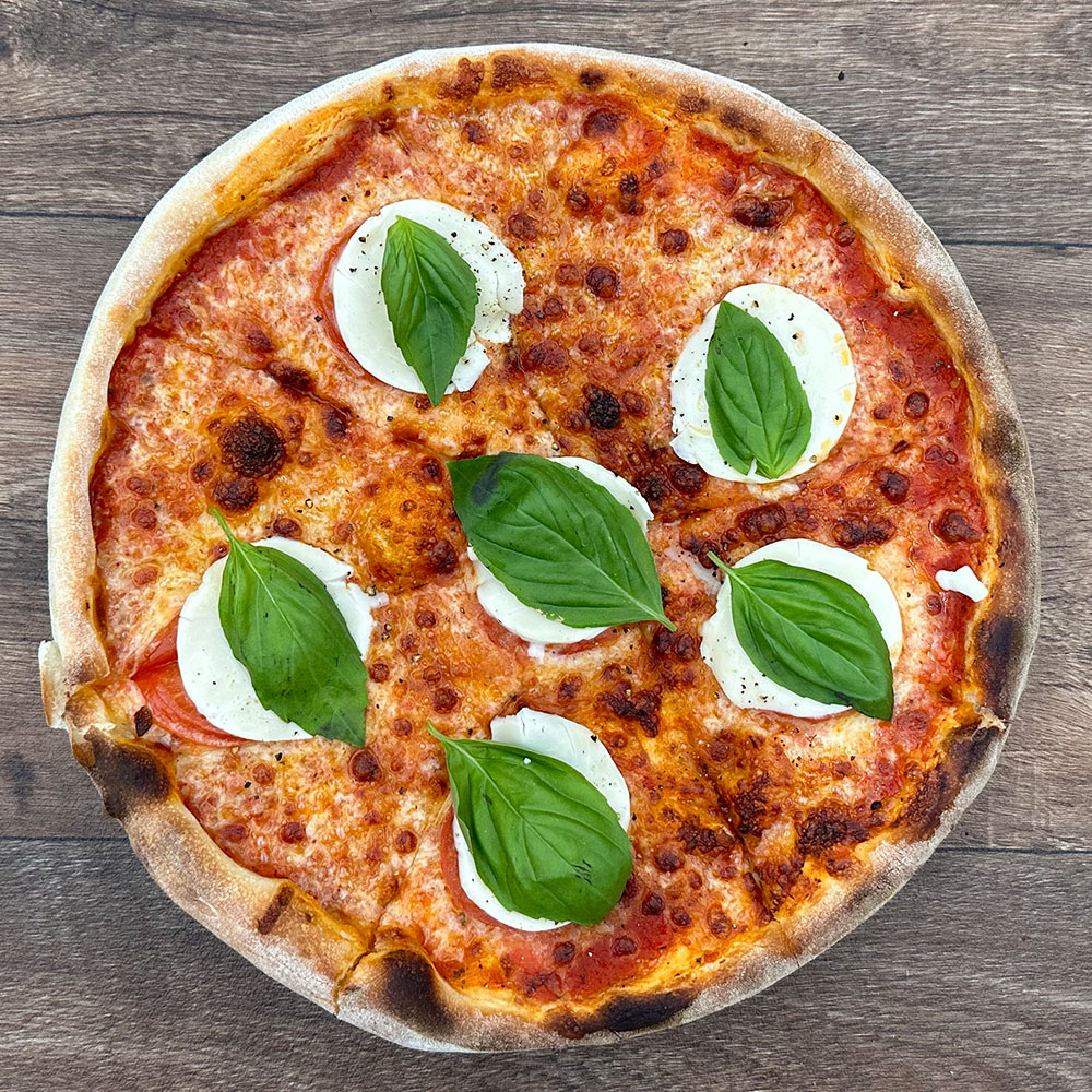Den Mozzarella gleichmäßig auf dem Pizzaboden verteilen.