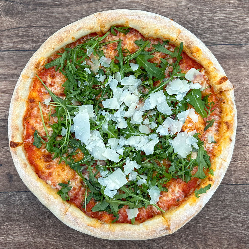 Rucola auf der Pizza verteilen.