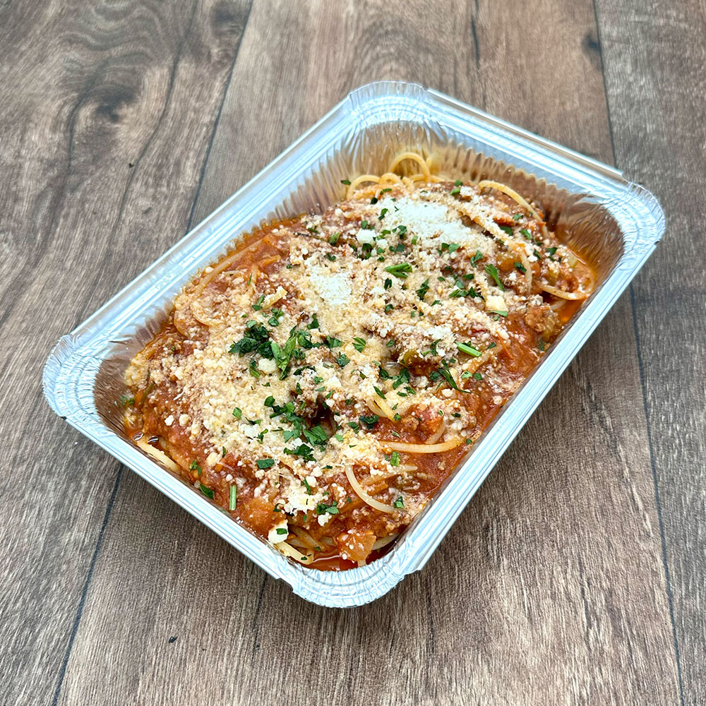 Alles in die Schale/Teller geben und mit Parmesan und Petersilie dekorieren.