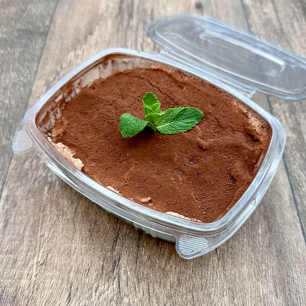 die Minze mittig in das Tiramisu zum dekorieren legen