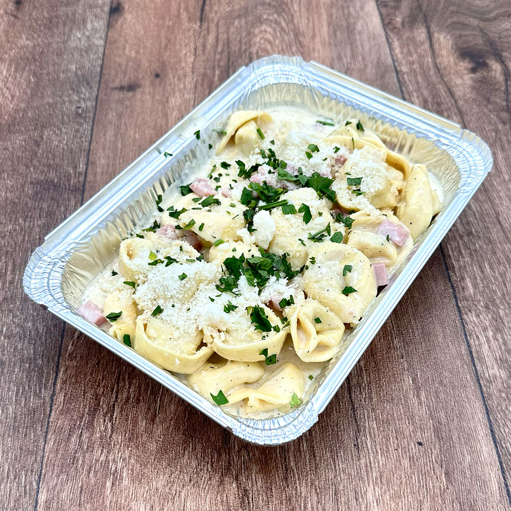 Tortelloni dazugeben und nach dem köcheln in die Schale/Teller geben und mit Parmesan und Petersilie dekorieren.