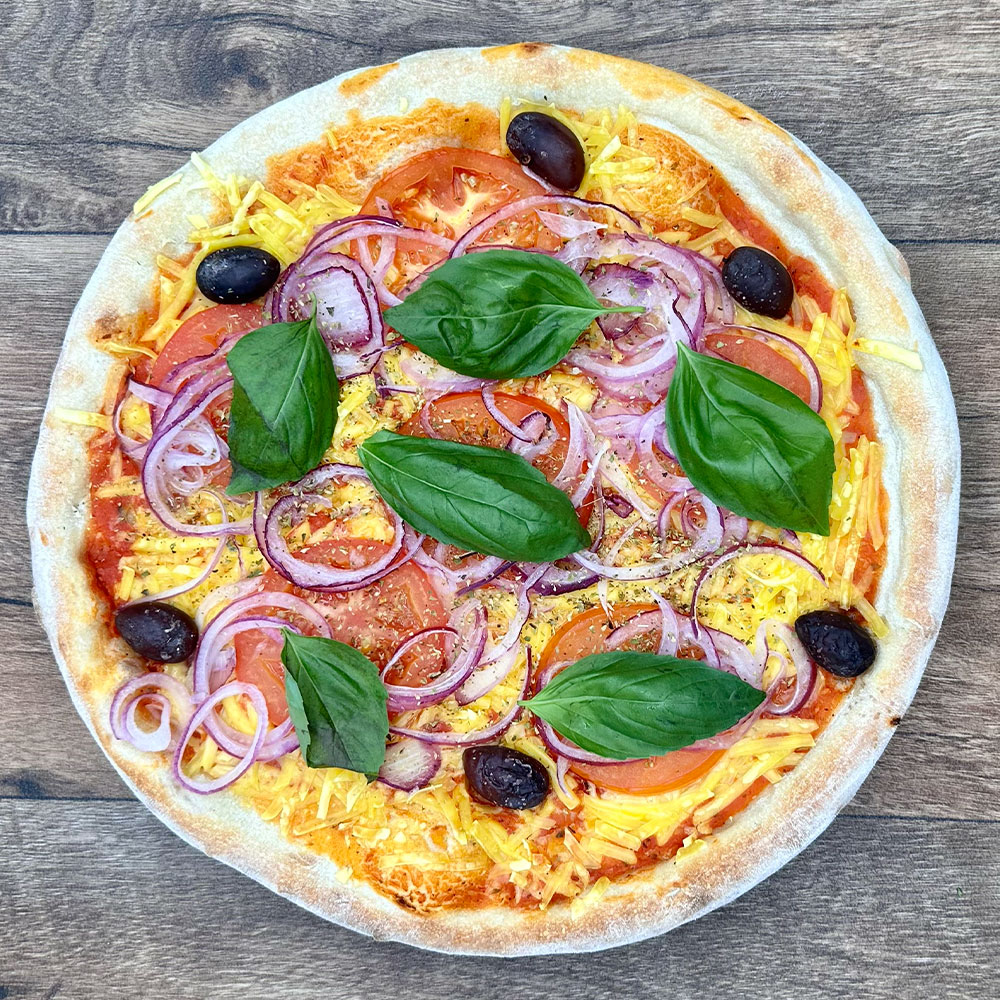 Die Pizza backen und an die Ausgabe stellen.