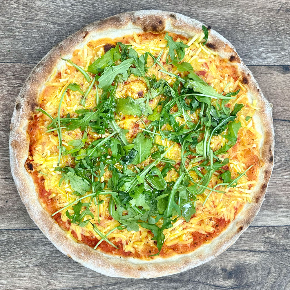 Rucola auf der Pizza verteilen.