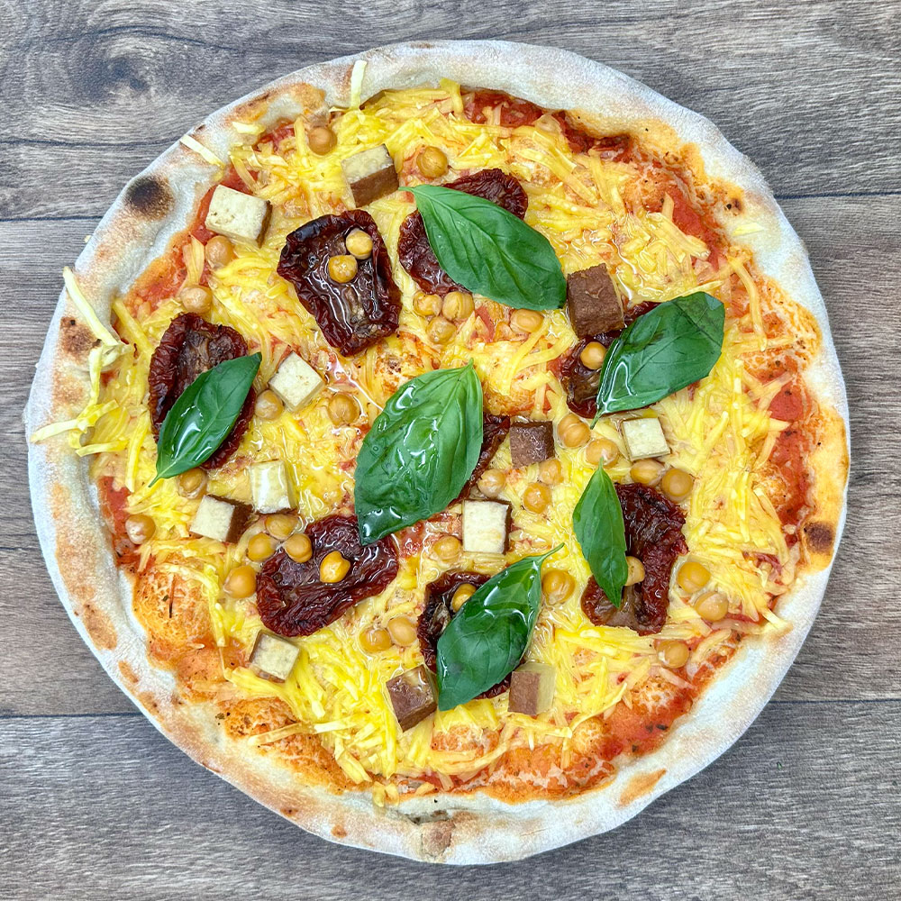 Den Tofu auf der Pizza verteilen.